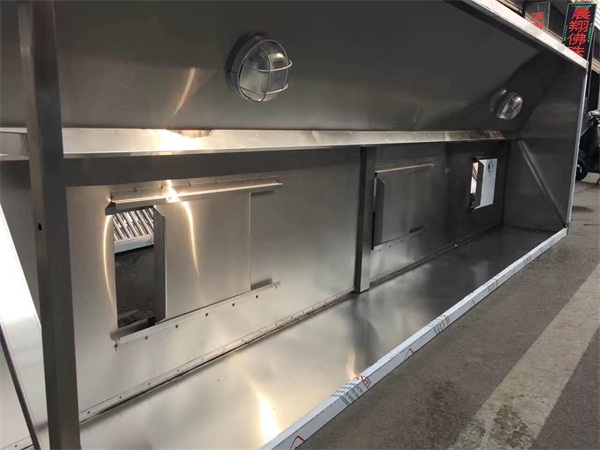 鐵制排煙罩僅為一矩形鐵制罩子,上開一孔接排煙管,罩在灶臺的上方。利用熱空氣上升的原理使油煙自然抽出室外。該種排煙罩工藝簡單,成本低廉,但排煙效果較差,只適用于煙霧不大的小型飲食場所。目前沒有定型產(chǎn)品,而是根據(jù)灶具的大小現(xiàn)場制作。